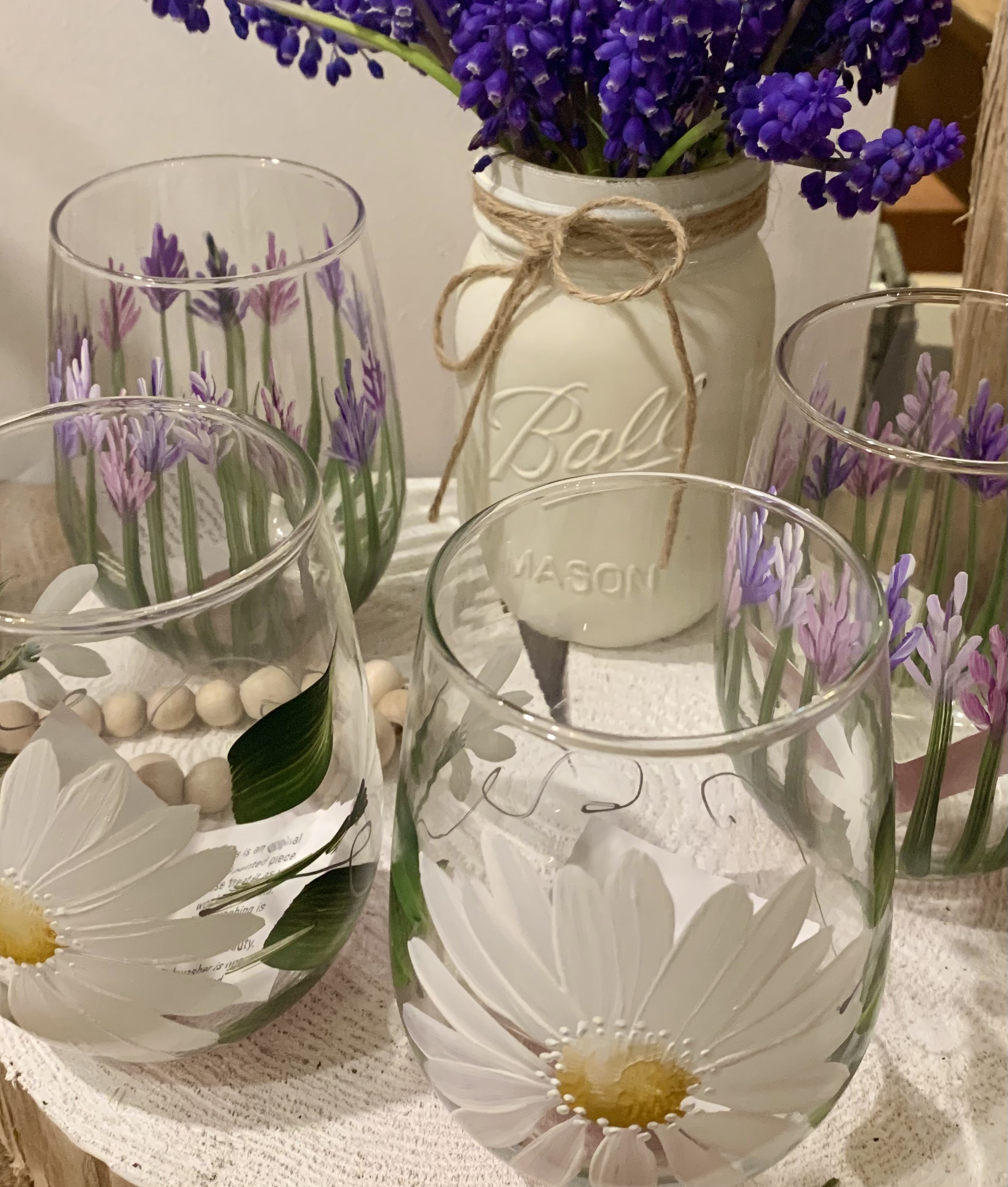 A beautiful set of Summertime Cocktail Glasses, locally and hand-painted for any occasion by Artisan Collective. This talented team of makers also offers their line of Natural Renewal soaps and shampoos, handmade with soothing scents and natural ingredients.