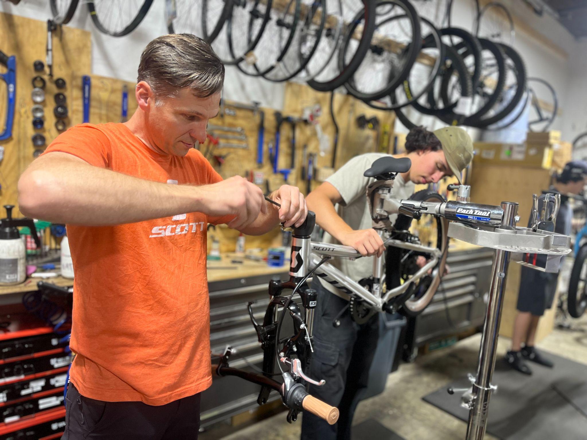 What can you expect from a visit to the Obsession: Bikes shop? James says you can bet his crew of pros are going to be asking a lot of questions to make sure they guide you toward the most effective and enjoyable purchase for you. Everything from what kind of biking you do, what your goals for the bike might be, if you already have any specific trails in mind, what line of work you’re in, and even what kinds of sports you played as a kid are all on the table! “We don’t use jargon, so we won’t make you feel alienated, and we want to include you in this journey,” says James, “We want to see you with the right bike for where you are now, and for what you want next.” A rider’s current level of activity, any injuries or physical conditions they may have acquired over time due to other sports or experiences– even their level of comfort with, and the way they talk about their current level are all helpful pieces of information in guiding you toward your ideal bike. James adds that the “staff really does remember you and your conversations, so next time you come back, you’re already farther along the journey.”