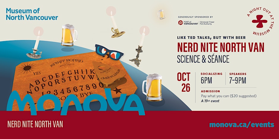 MONOVA will be happy to lure you and your loved ones into the museum for a Halloween-themed Nerd Nite! Listen to talks from experts in all things spooky while dressed up in your finest costumes for the costume contest. Tickets to Nerd Nite North Van: Science and Seance are pay what you can.
