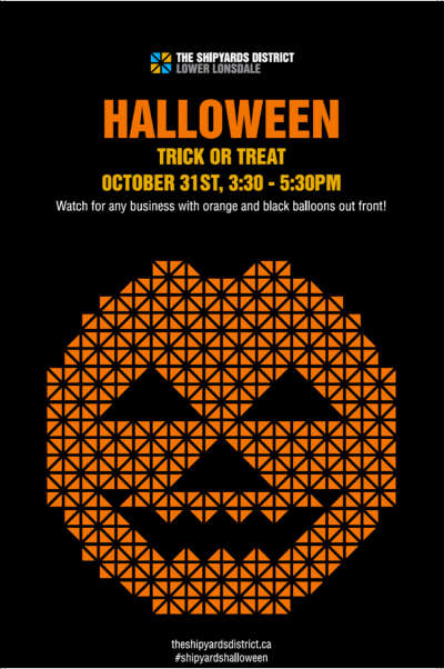 Nothing says Halloween like a little trick-or-treating, and this tradition is where The Shipyards District really glows the brightest. From 3:30-5:30pm on the big day, local businesses all over the neighbourhood get dressed in their ghoulish best to entice you in for treats, and maybe a few festive tricks too. Keep your eyeballs peeled for the orange and black balloons around town to direct you towards the participating businesses, and look out for any stilt-walkers and zombies who will most definitely be roaming the streets along with you!