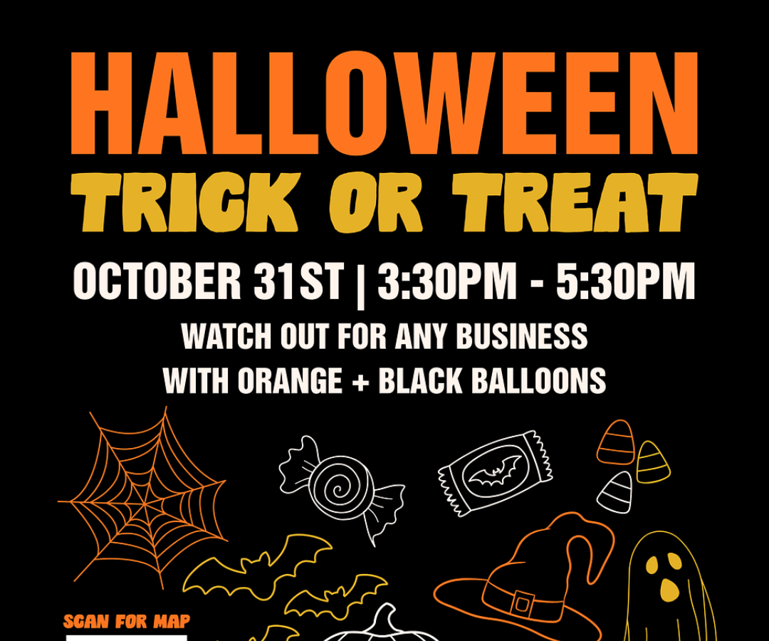 On October 31st, join us from 3:30 PM to 5:30 PM for a hauntingly fun trick-or-treat experience. Look for black and orange signage to discover over 60 participating businesses handing out sweet treats to all the little ghouls and goblins.