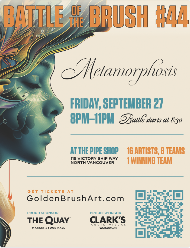 This upcoming painting battle, themed “Metamorphosis,” promises to deliver a whirlwind of colour, talent, and excitement, featuring Vancouver’s most brilliant artists in an epic face-off of imagination and skill.