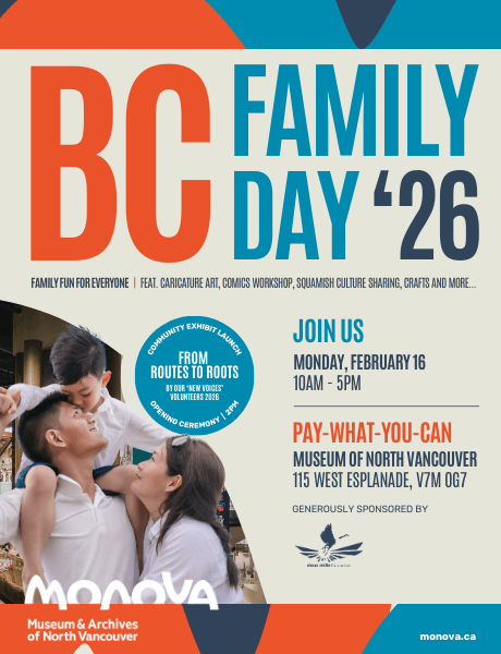 Promising a full day of fun for the entire family, enjoy a whole host of cultural activities & performances celebrating the diversity of the place we call home. Featuring the opening of our latest Community Exhibit ‘From Routes to Roots: A Newcomer’s Journey Across North Vancouver’, activities also include caricature art, a comics workshop, Squamish culture sharing, crafts and more…