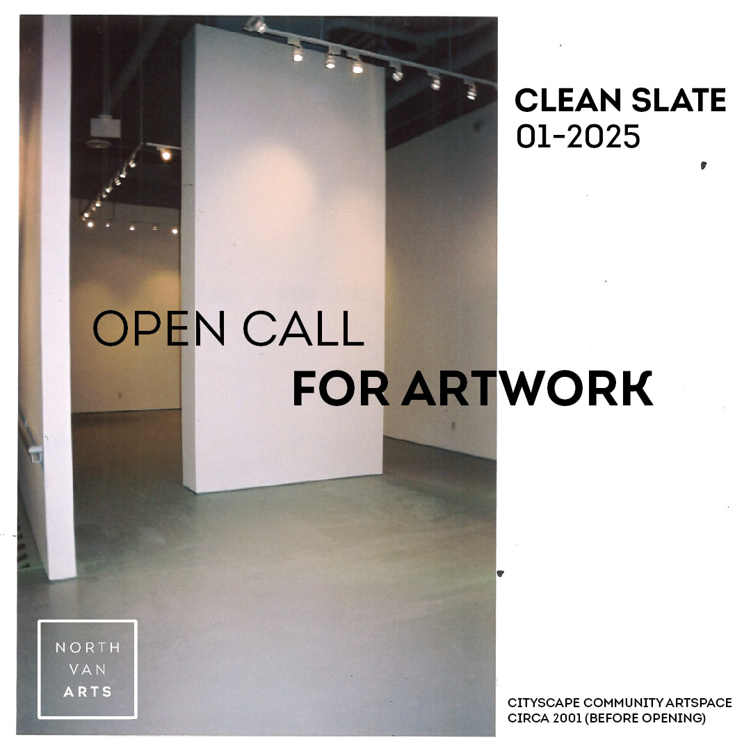 North Van Arts is currently accepting submissions for artwork to be included in the exhibition CLEAN SLATE, which will take place in our CityScape Community ArtSpace gallery in January of 2025. The deadline to submit artwork is December 6, 2024.