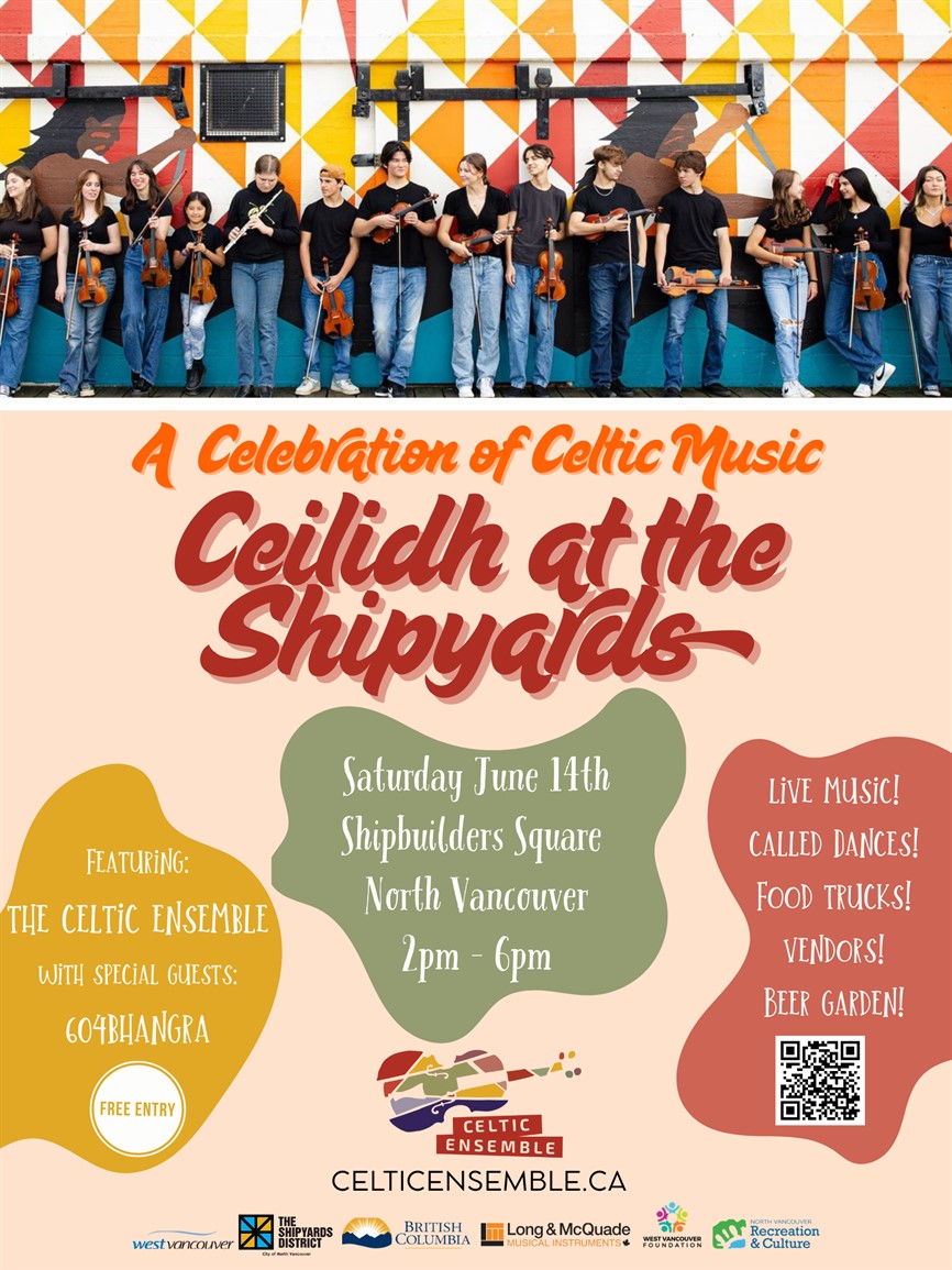 Join the North Shore Celtic Ensemble for Ceilidh At The Shipyards on June 14th from 2pm to 6pm at The Shipyards in North Vancouver!