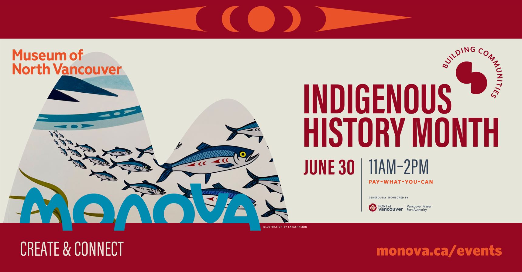 Connect, learn, and celebrate Coast Salish heritage and culture with us! Storytelling with Myia Antone author of Temlhawt’, Time of Herring, Coast Salish canvas painting with Tsawaysia Spukwus, and carver See-appl-tun as he demonstrates his work. Sunday, June 30 Audience: All Ages Time: 11 am to 2 pm Pay-what-you-can Generously Sponsored by the Port of Vancouver. More information at monova.ca/events