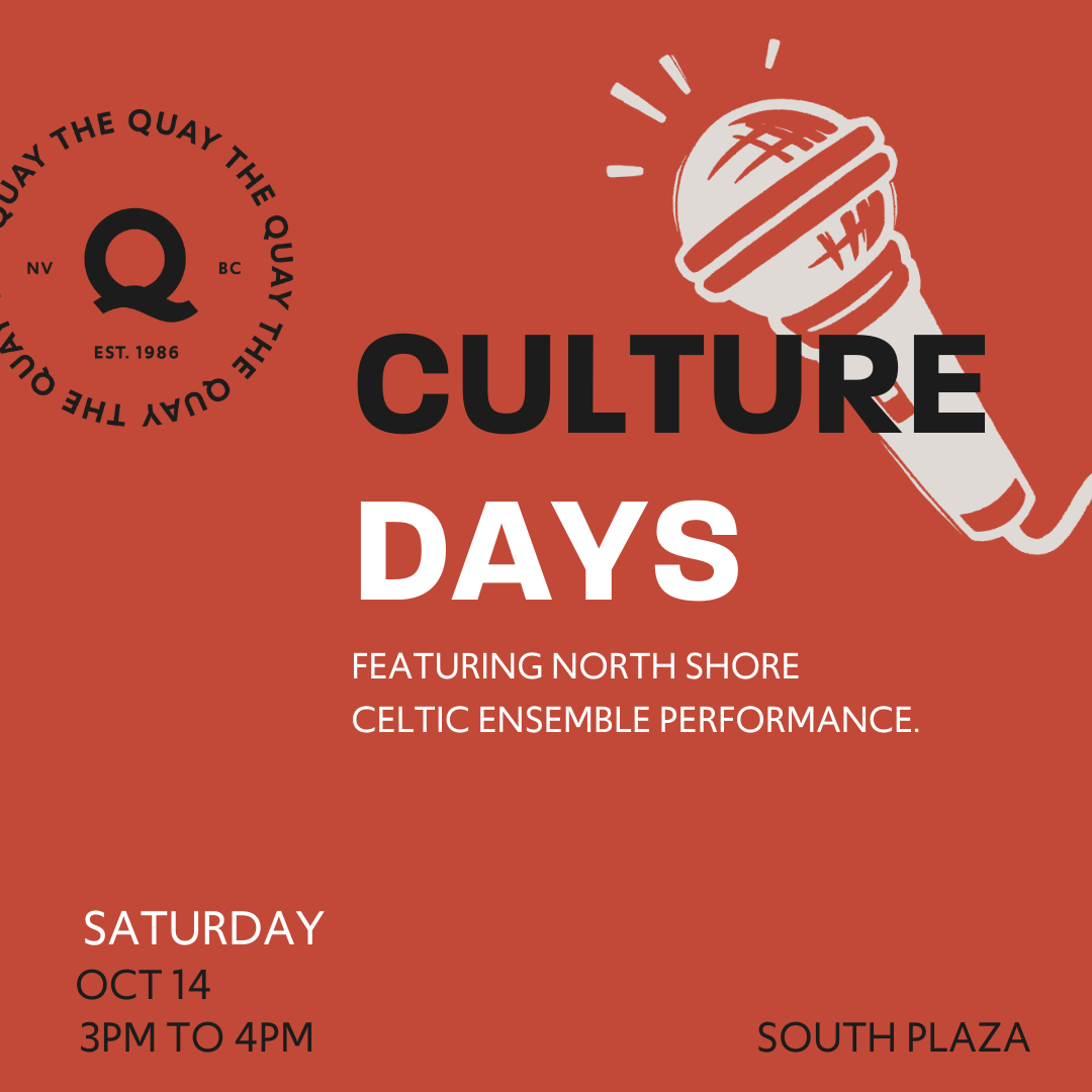 Come out and join the North Shore Celtic Ensemble (NSCE) for a concert for Culture Days: a national celebration of arts and culture. We invite you to listen, dance, laugh and enjoy our free afternoon concert on the South Plaza at The Quay (Lonsdale Quay Market) on October 14th from 3pm-4pm. They have woven together an hour of music that spans across genres, such as Celtic, Classical, Jazz, and Folk, to bring to locals and tourists alike. This event is made for all ages to enjoy! Bring your family and friends and experience a taste of the youth fiddle scene that is thriving within North Vancouver.
