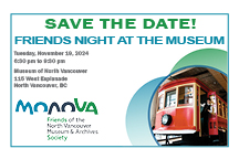 The Friends Night at the Museum fundraiser is back in support of MONOVA: North Vancouver Museum and Archives. All proceeds from the event help fund programs and exhibits designed to connect people, expand learning, explore history and inspire future generations.
