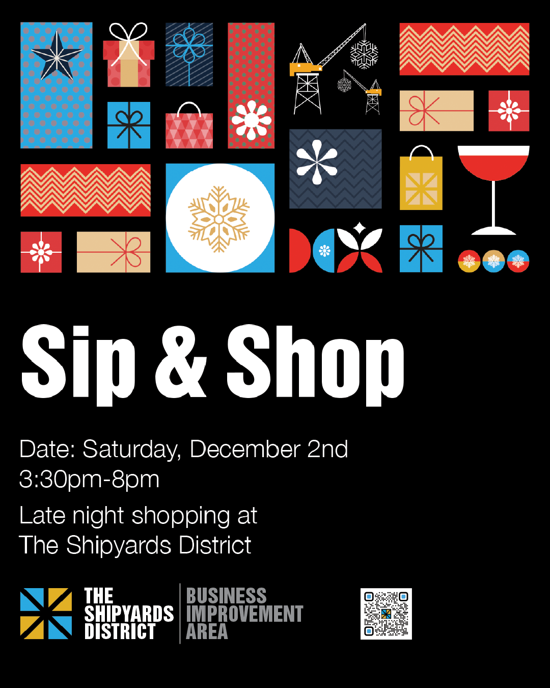 Participating shops and boutiques across the neighbourhood are keeping their doors open late, just for you. Discover perfect gifts, holiday decorations, and unique finds while exploring what The Shipyards District has to offer such as: