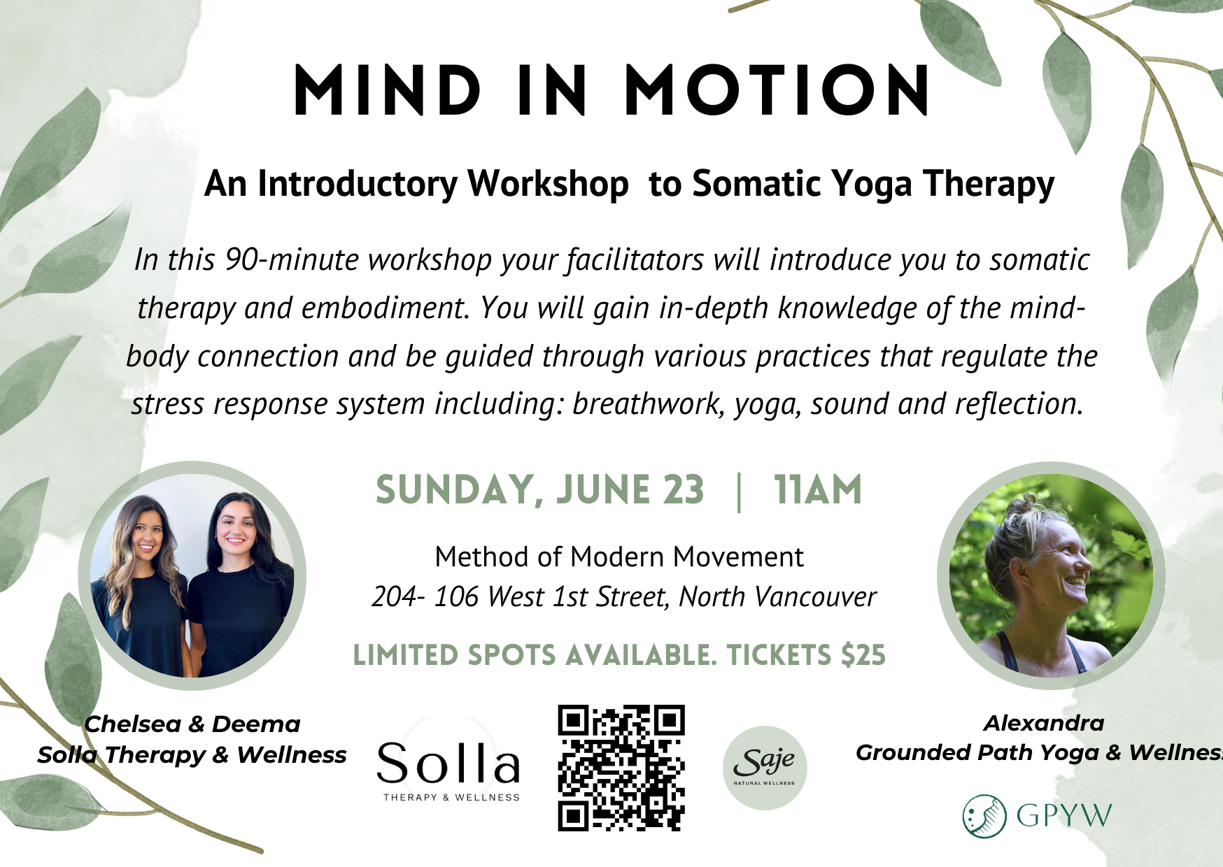 If you want to avoid Eventbrite’s fees you can directly e-transfer $26.25 to sollatherapy@gmail.com