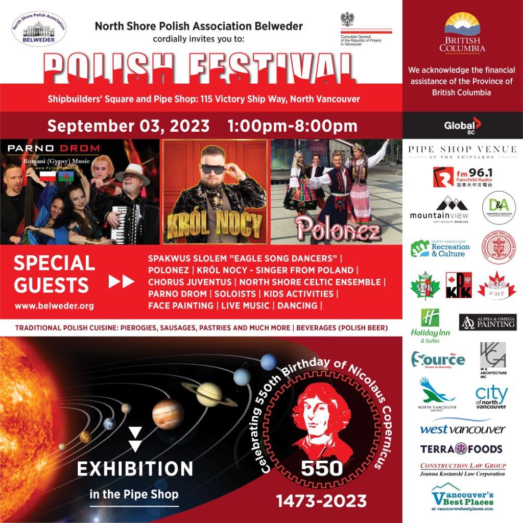 Polish Festival Vancouver takes place on September 3rd from 1:00 pm to 8:00 p.m. at the 115 Victory Ship Way, Shipyards North Vancouver.
