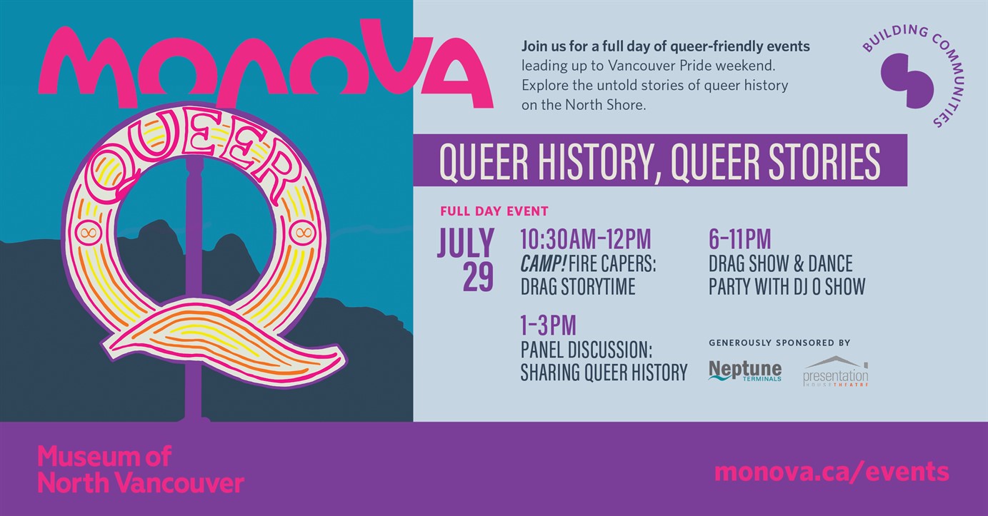 Join us as we celebrate Pride in North Vancouver! On Saturday, July 29, MONOVA: Museum of North Vancouver is hosting a full day of queer friendly events leading up to Vancouver Pride Week.