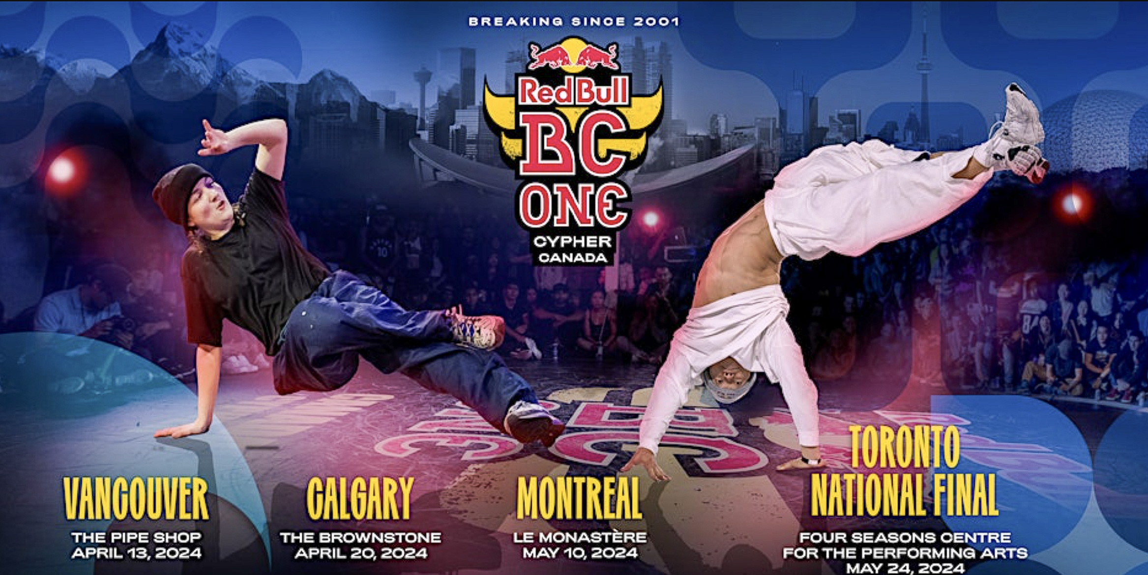 Red Bull BC One, the premier one-on-one breaking competition in the world, is coming back to Canada from April 13, 2024 to May 24, 2024. Each year, thousands of breakers from around the world compete to be the best and represent their countries at the Red Bull BC One World Final.